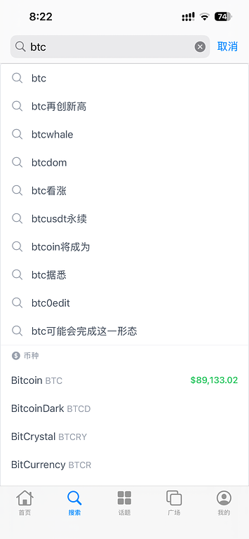 - 输入时实时显示搜索建议(标签、币种、用户)