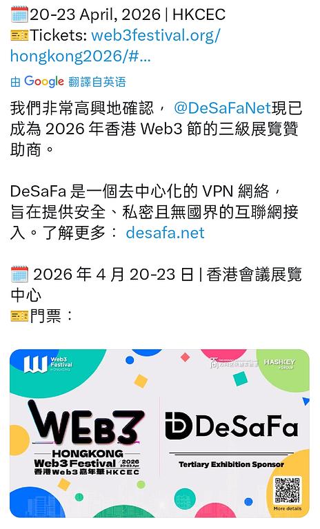 PoH+PoS混合共識機制,交易處理迅捷、手續費低至可忽略。專有分佈式網路協議 + 智能動態路由演算法,自動選擇最優路徑,延遲更低、吞吐量更高。無論追劇、科研、跨境辦公,體驗始終絲滑。 極致隱私保護 端到端加密 + 零知識證明 + 流量混淆技術,你的瀏覽記錄、IP地址、個人數據永遠不會被記錄、被追蹤。DeVPN App(支援Windows、macOS、iOS、Android)一鍵連接,DeVPN App(Google Play 已上架) DeApp,註冊即送一個月數據用量,邀請好友,每邀 1 人賺一筆,多邀多賺!代幣福利、生態權益等多重驚喜持續解鎖!立即加入,享新人專屬好禮!點擊鏈接註冊:https://deworker.desafa.net/invite?code=29710146