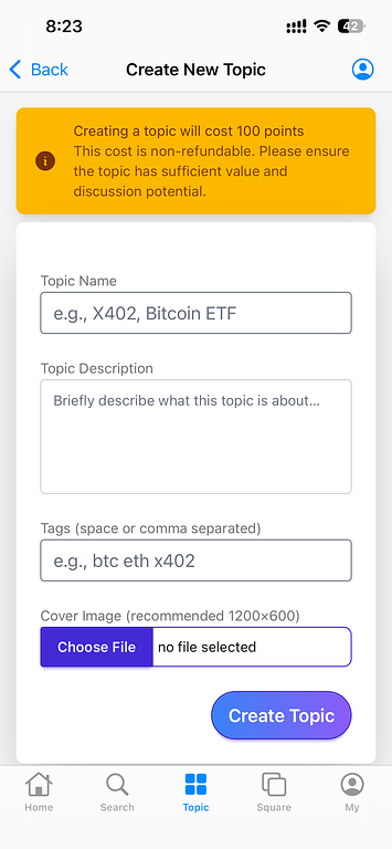 Creating a new topic costs 100 points (non-refundable), so please make sure the #topic has real discussion value and helps keep our community high-quality.