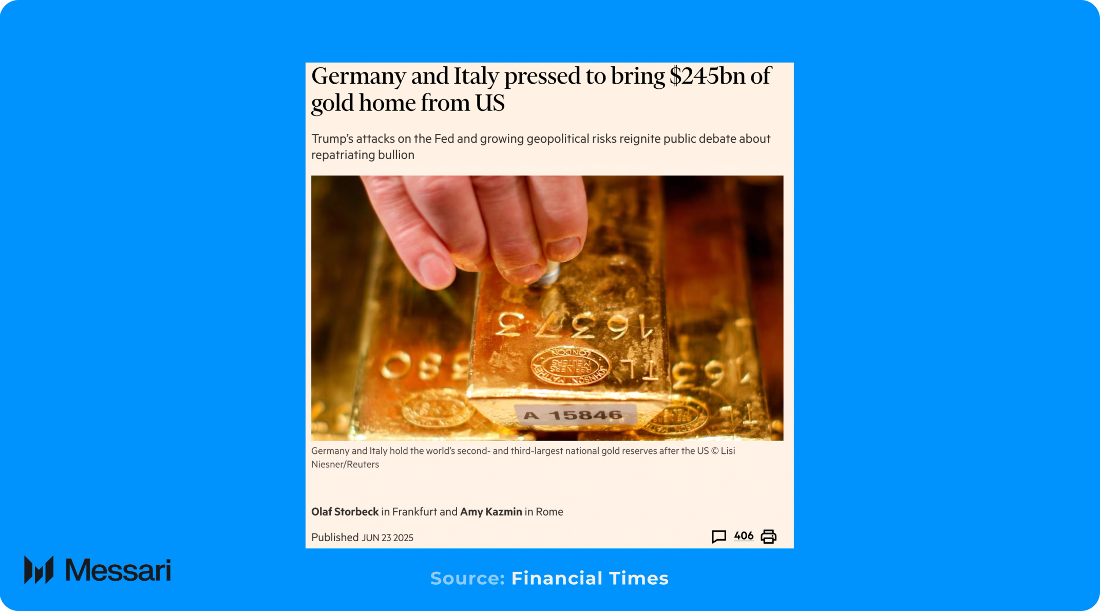 加密货币也改变了个人保管财富的方式。在法定货币体系下,真正意义上的自我保管已变得不切实际;大多数人依赖银行或其他金融中介机构来存放储蓄。即使是黄金等传统的非主权资产,最终也往往被存放在中央金库中,从而重新引入了基于信任的风险。实际上,这意味着如果托管机构或政府决定这样做,你的资产可能会被延迟、限制甚至完全剥夺。