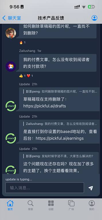 聊天室支持回复、表情反应和输入提示;Thread 连帖功能正式上线。