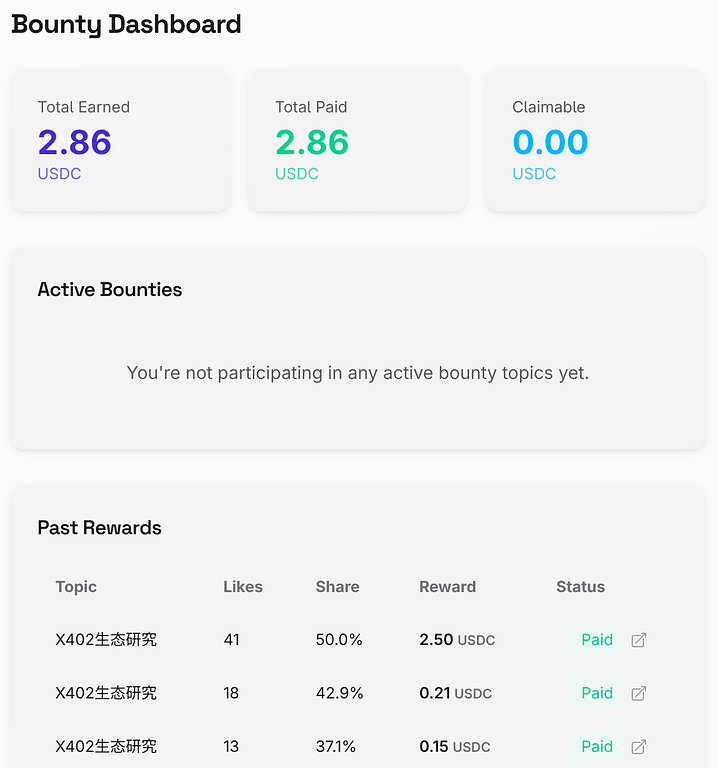 - USDC unit display refinement — Smaller #USDC label text on bounty dashboard and topic cards so the amount stands out more