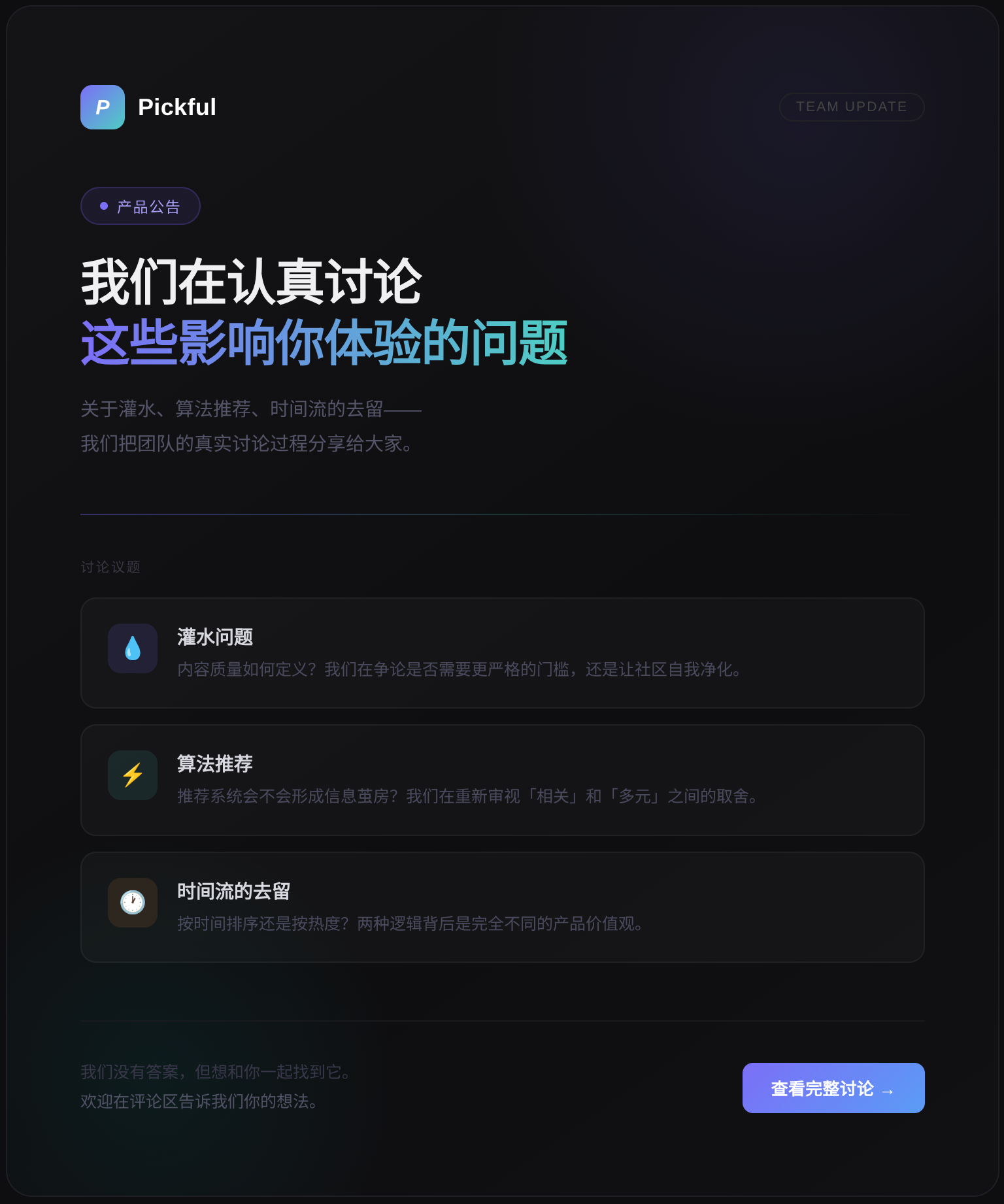 如有问题和建议,欢迎到 Pickful 技术与产品 话题反馈。 #pickful #周会 #产品
