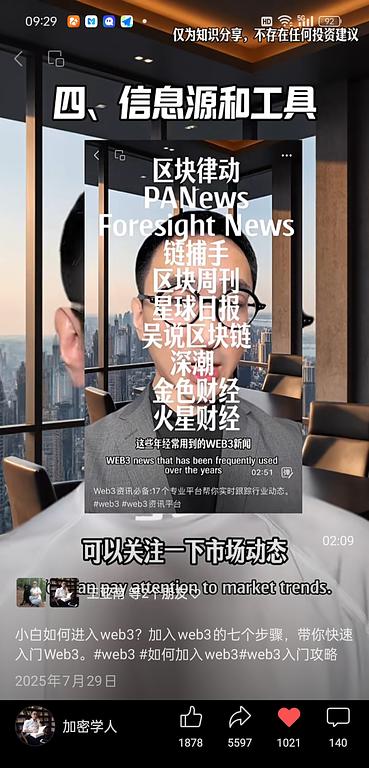 看了大家五花八门的web3信息来源,其实王老师早就在“加密学人”的微信视频号里提供了web3的信息源和工具,这些都是常用靠谱的web3信息源,对web3市场动态的追踪挺不错的,我们要好好利用起来,我现在也要从那些杂乱的信息转过来,借助王老师提供的资讯平台多学习。😊