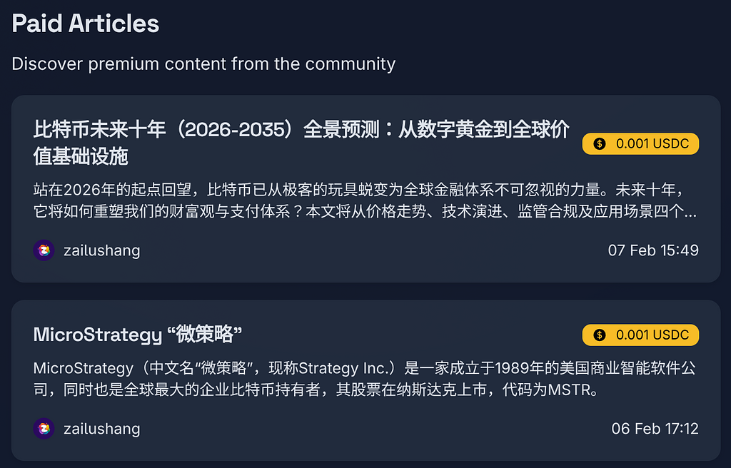 This update focuses on the paid article ecosystem, introducing purchase history, a global paid articles hub, on-chain transaction tracking, and more — making earnings more transparent for creators and purchases more seamless for readers