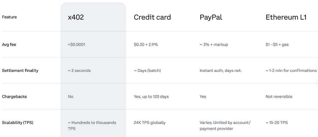 与 Lightning Network(比特币) :x402 更专注于 AI 和 Web2 集成,Lightning 更适合比特币生态的点对点支付。 x402 的 Gas 费低于 Lightning 的通道管理成本。 与 Stripe Connect :x402 是去中心化的,无需中介,Stripe 依赖中心化网关。 x402 更适合微支付,Stripe 更适合大额交易。 与 PayPal Beacon :PayPal Beacon 是中心化协议,x402 基于区块链,隐私性更强。 费用参考: