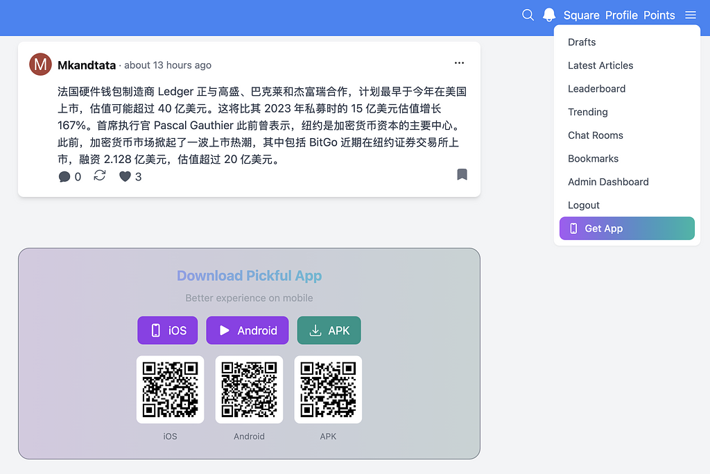 • 帖子详情页:非 App 用户现在会看到醒目的下载入口 + 二维码(iOS / Android / APK 一键扫码)