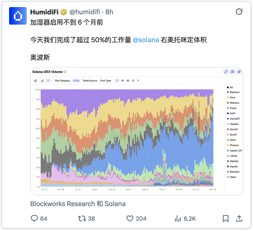 • HumidiFi 为超过 60% 的螺旋桨 AMM 活动提供支持。