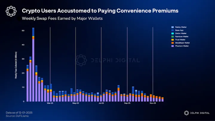 聚合时代遵循着数字市场一条熟悉的规律:当分发成本降低时,价值就会转移到拥有用户的人手中。在加密货币领域,这种理念早先以 #key-takeaways?utm_source=link&utm_medium=portal">“胖钱包”理论的形式出现 。如今的不同之处在于,技术栈终于足够成熟,真正的加密货币超级应用(聚合巨头)得以存在,而不再局限于钱包的形式。