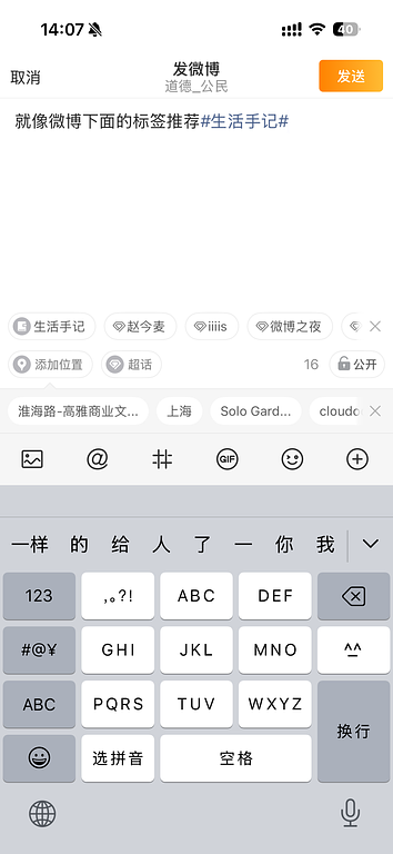 发布内容,如果先添加图片,没有输入光标,不知道在哪里打字?就算找到了,也只能在图片小面输入,不合理。还有超过了字数限制